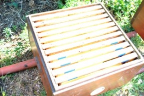 Dnes jsem na Velikonoční pondělí rozšířil nová včelstva pokaždé o jeden nástavek.Přidával jse jak mezistěny tak souše a vždy dva stavební rámky (oz.modrou barvou).Špatně jsem si nastavil fotoaparát ,takže fotografie nic moc.Ale nechtěl jsem holky moc dráždit a tak jsem se raději věnoval práci než focení.Tento krok budu ještě muset dotáhnout do konce.Jinak včely velmi klidné.Matku jsem nenašel ani u jedních,ale plod byl zavíčkovaný i cca týdení larvičky.Byla i trubčina.Ale jak jsem již psal nechtěl jsem je poprvé moc dráždit.Jinak nádherné počasí.Odpoledne má být cca až 21 stupňů.