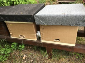 V sobotu jsem si přivezl další nová včelstva a to z Farmy Veletov.Večer byla velká zima a tak jsem prohození nechal až na dnešek Včelstva byla v papírových krabicích se zasíťovaným dnem.Na noc jsem je přikryl a dal stříšku z klasického úlu.Teplota v noci kolem 2-4 stupňů.